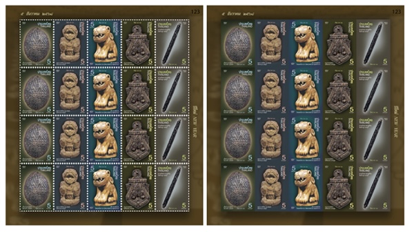 สำหรับเครื่องรางไทยที่ได้รับการถ่ายทอดความขลังสู่แสตมป์ชุดพิเศษ ชุดปีใหม่ 2569 (ภาพเบญจภาคีเครื่องราง) ในครั้งนี้ ได้แก่ 1. เสือหลวงพ่อปาน วัดมงคลโคธาวาส ความสง่างาม อำนาจและบารมี 2. หนุมานหลวงพ่อสุ่น วัดศาลากุล ความกล้าและเมตตา 3. เบี้ยเเก้ หลวงปู่รอด วัดนายโรง พลังแห่งการพลิกเคราะห์ร้ายเป็นโชคดี 4. ราหูกะลาแกะ หลวงพ่อน้อย วัดศีรษะทอง ป้องกันภัยพิบัติและสิ่งอัปมงคล สร้างความสงบ มั่นคงและสมดุล 5. ตะกรุดมหาโสฬส หลวงปู่เอี่ยม วัดสพานสูง เครื่องหมายของสติและปัญญา
