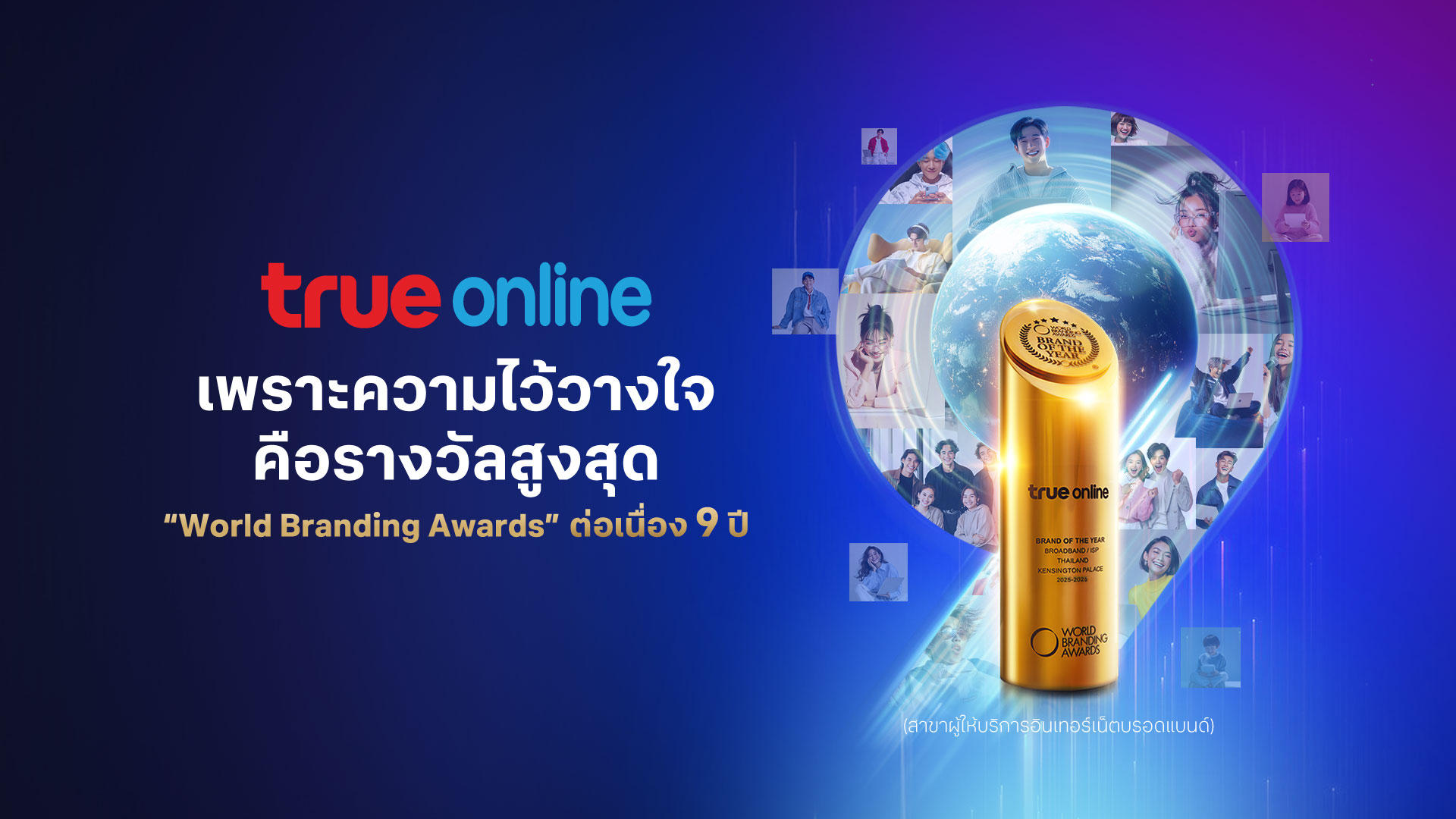 จัดโดย World Branding Forum (WBF) องค์กรไม่แสวงหาผลกำไรในสหราชอาณาจักร ด้วยคะแนนจากเสียงโหวต การสำรวจตลาดและความนิยมของผู้บริโภค รวมถึงการประเมินมูลค่าแบรนด์จากความแข็งแกร่งและศักยภาพการเติบโตของแบรนด์ ตอกย้ำกลยุทธ์ของเรา ที่ยึดลูกค้าเป็นศูนย์กลางในทุกสิ่งที่เราทำ (Customer-Obsessed) รางวัลระดับโลกที่ได้รับในปีนี้ จะเป็นแรงขับเคลื่อนสำคัญให้ ทรูออนไลน์เดินหน้ายกระดับมาตรฐานเทคโนโลยีและบริการ เสริมความแข็งแกร่งให้ทรูออนไลน์ เป็นแบรนด์เน็ตบ้านระดับโลก ที่อัพชีวิตคนไทยให้สมาร์ท เชื่อมโยงการสื่อสาร และประสบการณ์ดิจิทัลในบ้านที่ดีที่สุด”