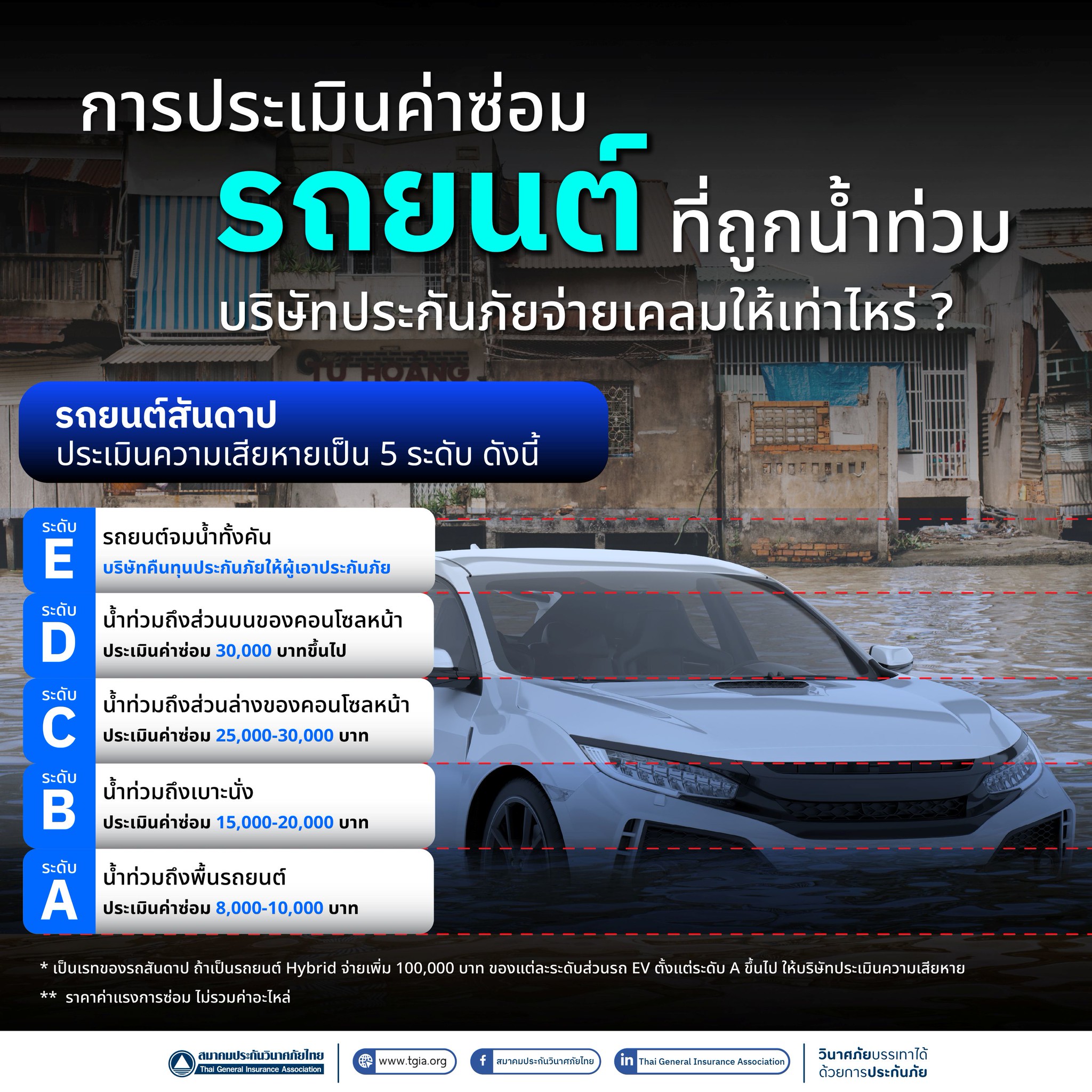 ระดับ B น้ำท่วมถึงเบาะนั่ง ประเมินค่าซ่อม 15,000-20,000 บาท