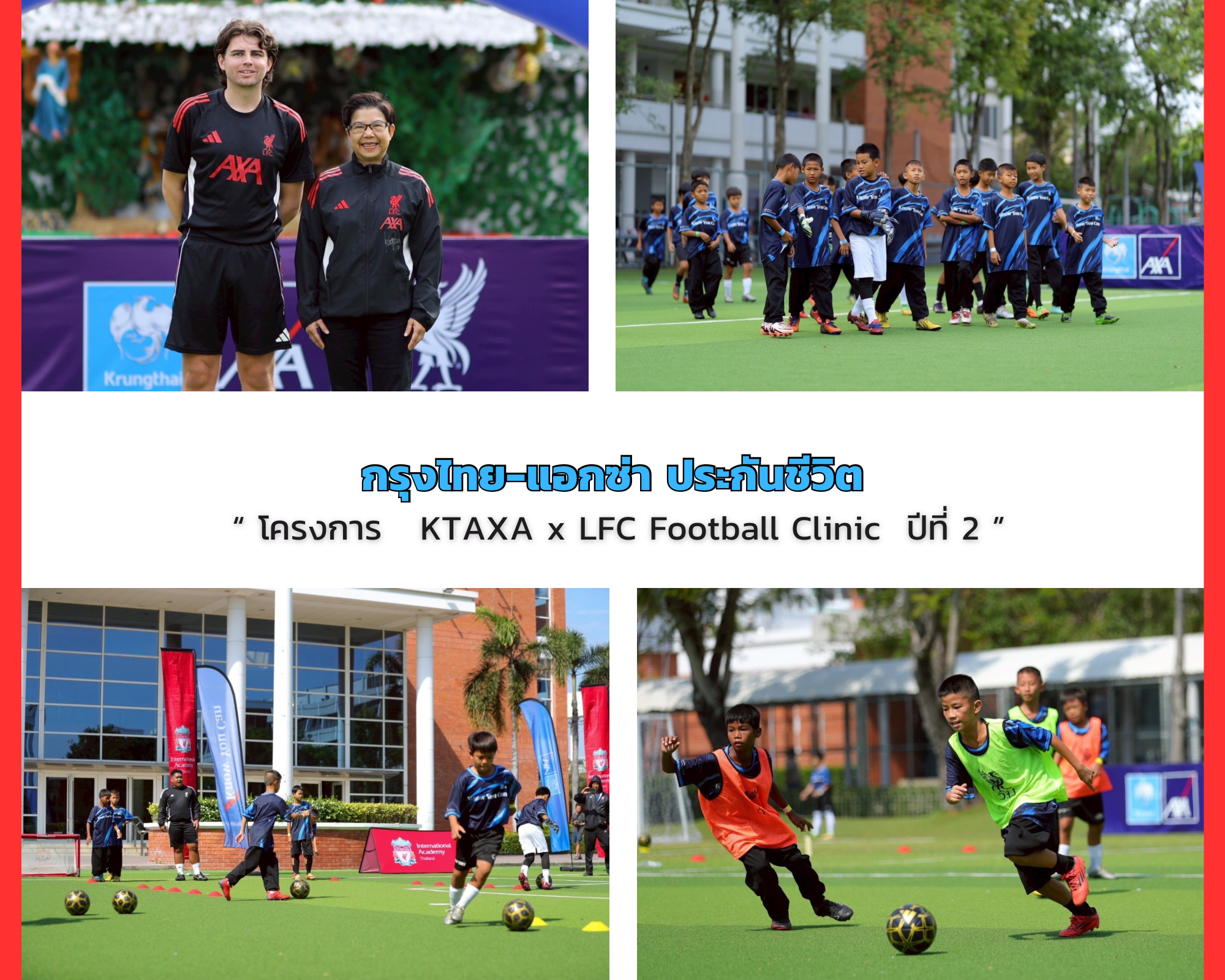 บมจ.กรุงไทย-แอกซ่า ประกันชีวิต นำโดยคุณบุปผาวดี โอวรารินท์ประธานเจ้าหน้าที่บริหาร ฝ่ายการตลาด บริษัท กรุงไทย-แอกซ่า ประกันชีวิต จัดกิจกรรมฟุตบอลเยาวชนส่งท้ายปี 2025 กับโครงการ KTAXA x LFC Football Clinic ปีที่ 2 ที่เปิดโอกาสให้เยาวชนอายุระหว่าง 10-12 ปี เข้าร่วมฝึกทักษะกีฬาฟุตบอลกับทีมโค้ชที่ส่งตรงมาจากประเทศอังกฤษ รวมถึงทีมโค้ชจาก Liverpool FC International Academy Thailand และความพิเศษของปีนี้ ทางบริษัทฯ ได้เปิดโอกาสให้น้องๆ ผู้พิการทางสายตา ได้มีโอกาสเข้าร่วมฝึกทักษะ เพื่อตอกย้ำความุ่งมั่นของบริษัทฯ ที่สนับสนุนความเท่าเทียมกันตลอดมา