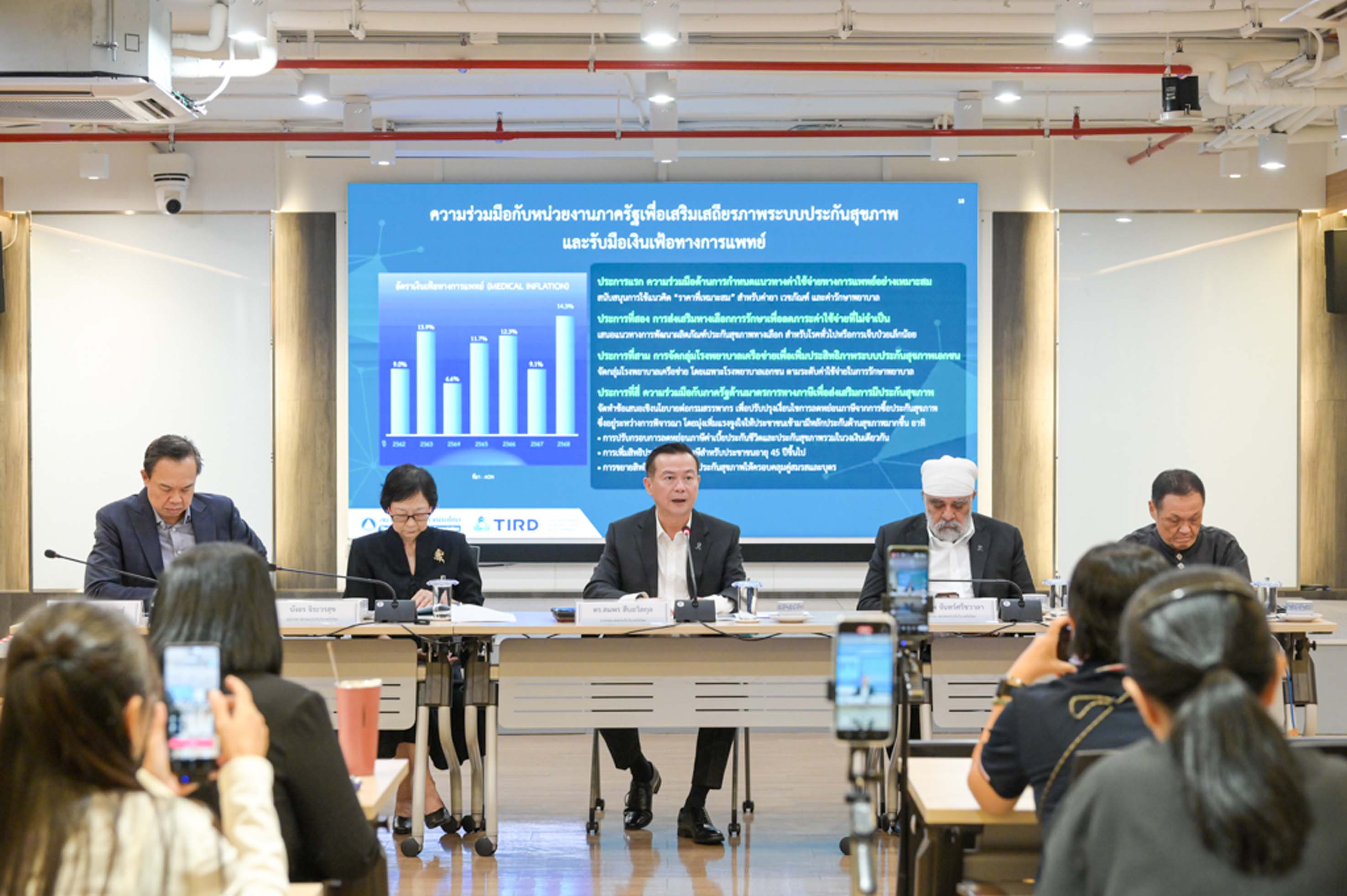 ทั้งนี้ ภายใต้ความเสี่ยงที่มีความซับซ้อนและเปลี่ยนแปลงรวดเร็ว ภาคธุรกิจประกันวินาศภัยได้เตรียมความพร้อมอย่างเป็นระบบ โดยมุ่งบริหารความเสี่ยงจากภัยธรรมชาติและสภาพภูมิอากาศผ่านการใช้แบบจำลองภัยพิบัติและการประกันภัยต่ออย่างเหมาะสม ควบคู่กับการเสริมเสถียรภาพระบบประกันสุขภาพผ่านความร่วมมือกับภาครัฐเพื่อควบคุมต้นทุนและรับมือเงินเฟ้อทางการแพทย์