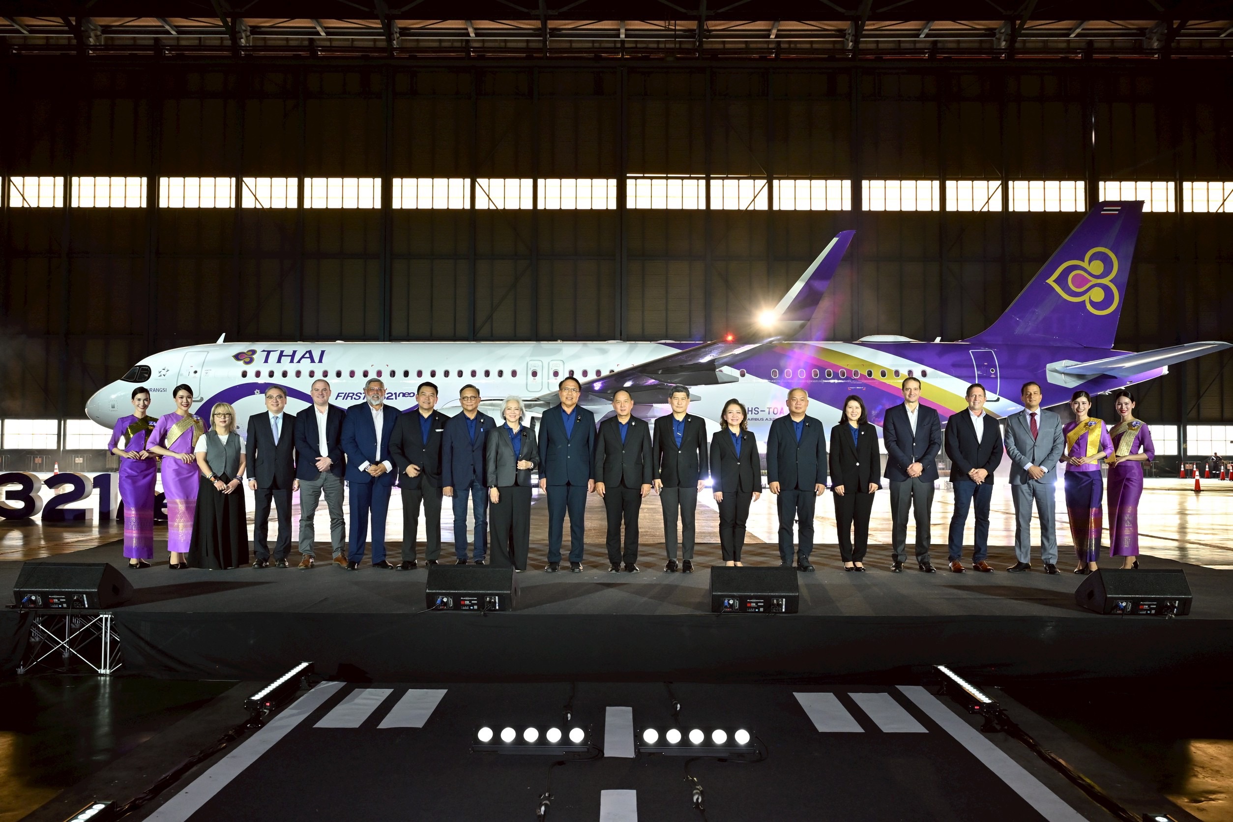 บริษัท การบินไทย จำกัด (มหาชน) จัดงานเปิดตัวอากาศยานแบบ Airbus A321neo ลำแรก ณ โรงจอดอากาศยานของบริษัทฯ ท่าอากาศยานสุวรรณภูมิ พร้อมเผยโฉมผลิตภัณฑ์ภายในห้องโดยสาร สะท้อนความมุ่งมั่นในการยกระดับประสบการณ์การเดินทาง ควบคู่กับการเพิ่มประสิทธิภาพฝูงบินและการดำเนินธุรกิจอย่างยั่งยืนด้านสิ่งแวดล้อม โดยมีนายสัมฤทธิ์ สำเนียง นางชนัญญารักษ์ เพ็ชร์รัตน์ คณะกรรมการบริษัทฯ พร้อมด้วยนายชาย เอี่ยมศิริ ประธานเจ้าหน้าที่บริหารบริษัทฯ ผู้บริหาร และพันธมิตรทางธุรกิจ เข้าร่วมงาน