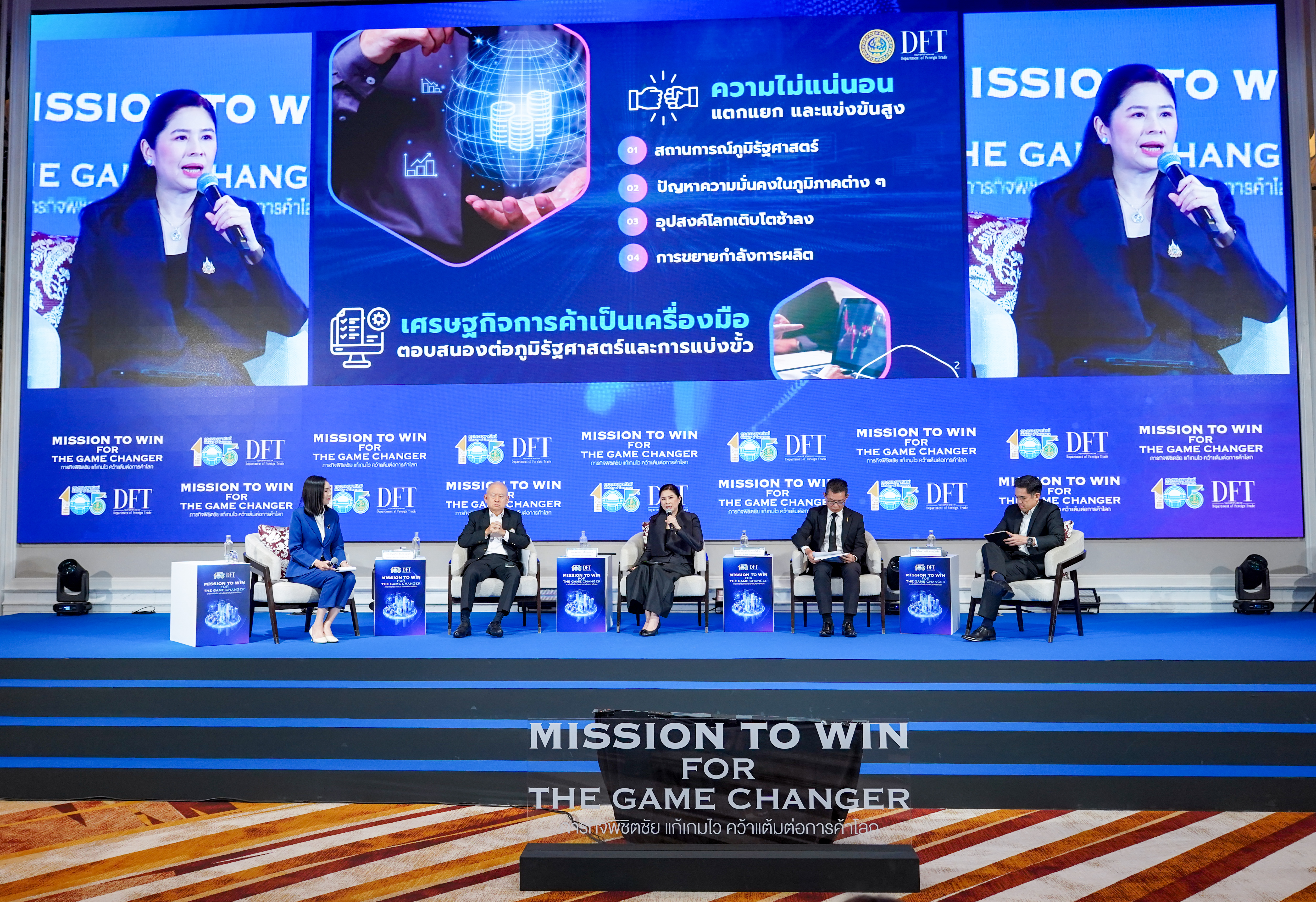 กระทรวงพาณิชย์ โดยกรมการค้าต่างประเทศ จัดสัมมนาใหญ่ “Mission to Win for The Game Changer : ภารกิจพิชิตชัย แก้เกมไว คว้าแต้มต่อการค้าโลก” เพื่อเตรียมความพร้อมและเสริมศักยภาพผู้ประกอบการไทยให้สามารถแข่งขันได้ในเวทีการค้าโลก
