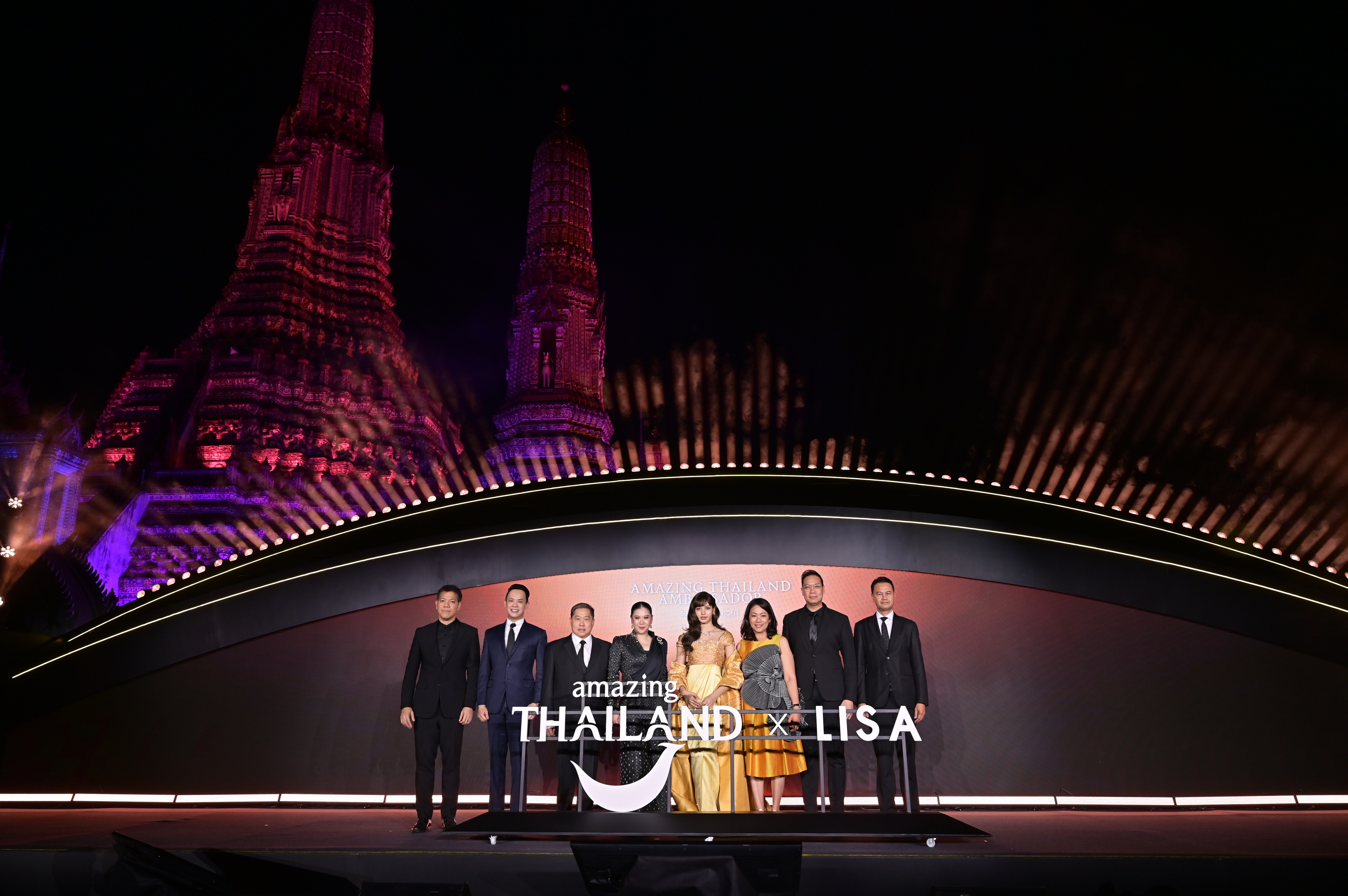 การเปิดตัว Amazing Thailand Ambassador ในครั้งนี้ จัดขึ้นอย่างยิ่งใหญ่ ณ วัดอรุณราชวรารามราชวรมหาวิหาร แลนด์มาร์กสำคัญทางวัฒนธรรมและประวัติศาสตร์ที่เป็นที่รู้จักทั่วโลก สะท้อนภาพลักษณ์ของประเทศไทยได้อย่างทรงพลัง พร้อมตอกย้ำเสน่ห์อันโดดเด่นของไทยที่ผสานความวิจิตรประณีตแบบดั้งเดิมเข้ากับพลังแห่งการสร้างสรรค์อย่างร่วมสมัยได้อย่างงดงามและลงตัว